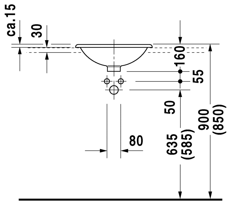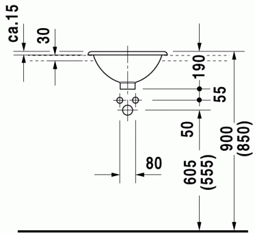 für Einbau von oben, mit Überlauf, ohne Hahnlochbank, Unterseite glasiert