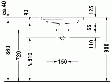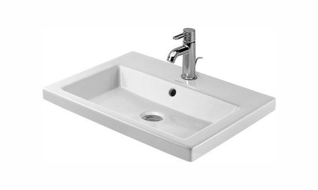 für Einbau von oben, mit Überlauf, mit Hahnlochbank, Rückwand glasiert, Überlaufclip Chrom inklusive