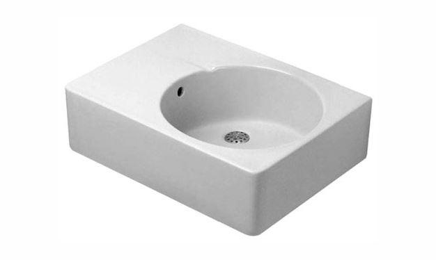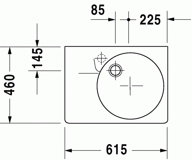 mit Überlauf, mit Hahnlochbank, Unterseite glasiert, Becken rechts