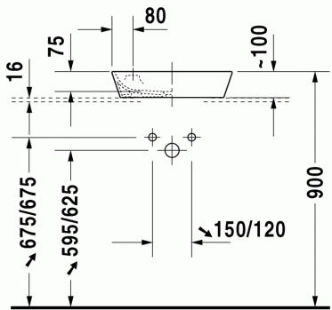 geschliffen, ohne Überlauf, mit Armatureninsel