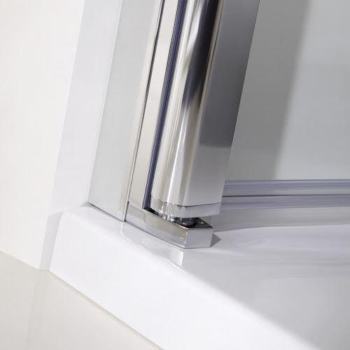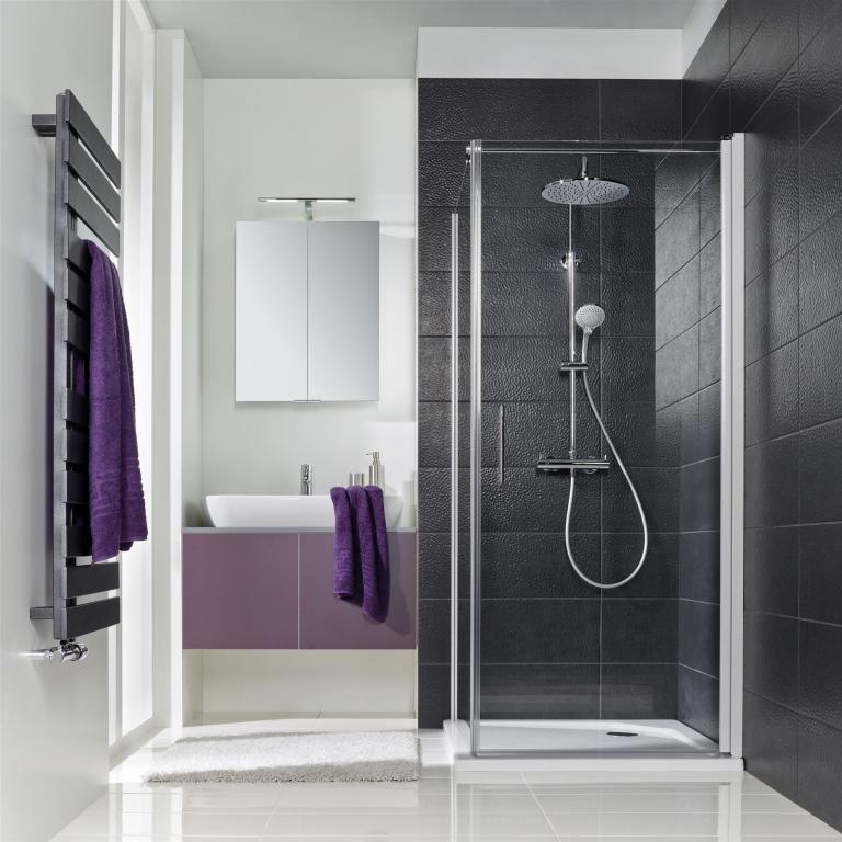 Eine attraktive Duschlösung für junge Bäder. Drehtür und Seitenwand sind in 75 bis 100 cm Breite lieferbar. Direkt neben einer Badewanne platziert kann die Drehtür auch mit einer verkürzten Seitenwand kombiniert werden.