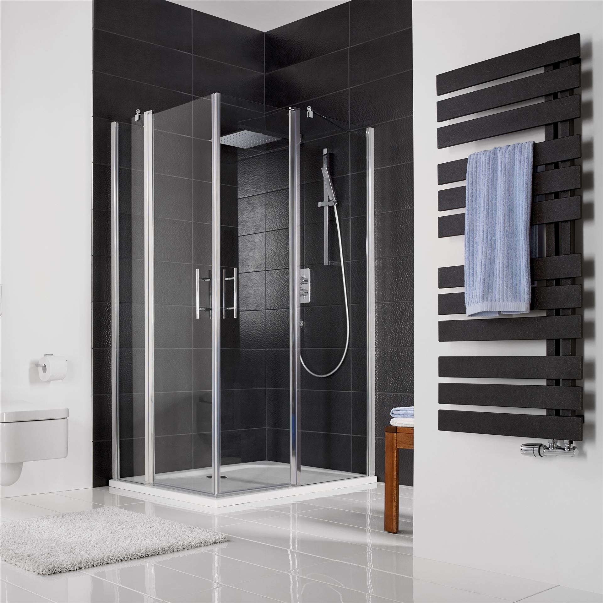 Zuverlässig Eine Magnetschließleiste sorgt für ein sauberes und zuverlässiges Schließen der 5 mm Sicherheitsglas-Türen. Die neuen Dreh- und Pendeltürlösungen sind in einer Höhe von 195 cm lieferbar.