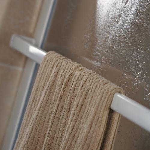 Der serienmäßige Handtuchhalter der Favorit Seitenwand bietet jedem Handtuch Platz – direkt dort wo es gebraucht wird – an der Dusche!