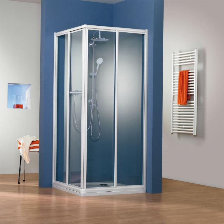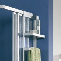 Praktisch Platz für Badutensilien und Handtücher kann man nie genug haben! Daher ist der 3-teilige Eckeinstieg serienmäßig mit Handtuchalter und Ablage ausgestattet.