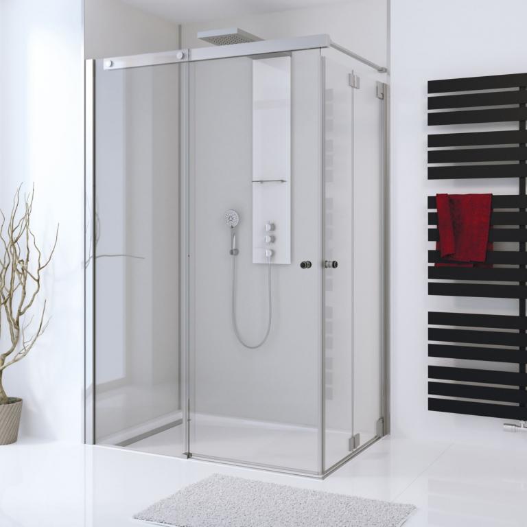 Die massiven Glas und Wandwinkel der Serie K2 sehen nicht nur glänzend aus, sondern sorgen mit ihrer innen glasbündigen Bauweise für eine hohe Pflegeleichtigkeit und somit für dauerhafte Brillanz.