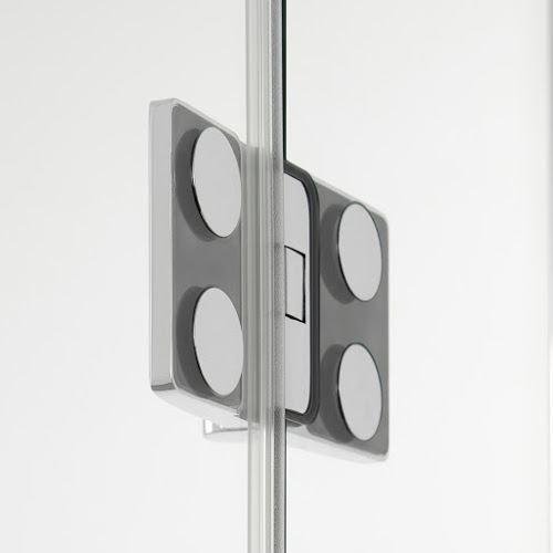 Alle Scharniere bilden eine perfekte Einheit mit dem Sicherheitsglas der Duschkabine, da sie innen glasbündig sind. So wird die Reinigung und Pflege der Glasflächen besonders einfach und durch nichts gehindert.