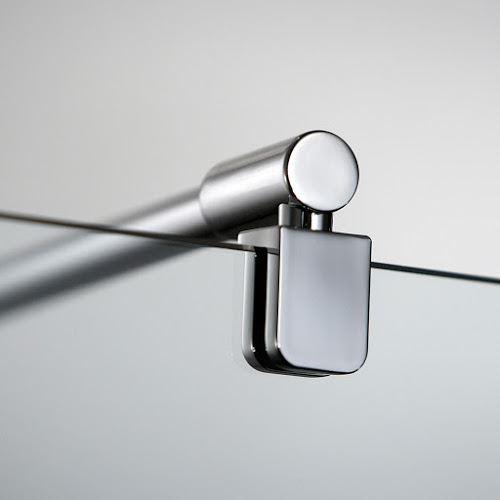 Stabil Ein solider Stabilisationsbügel sorgt auch bei Aperto für einen sicheren Halt der Glaselemente. Die abgerundeten Ecken verleihen der Duschkabine eine frische Optik.