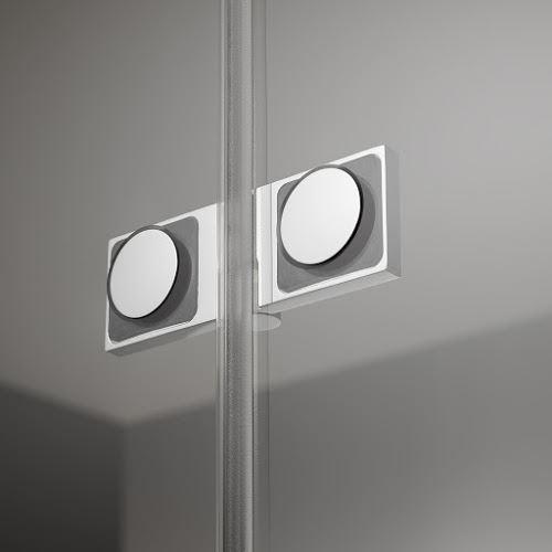 Eine Magnetschließleiste sorgt in Kombination mit den ergonomischen Griffen für ein sauberes und zuverlässiges Schließen der 8 mm Sicherheitsglas-Türen.