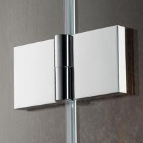 Die innen glasbündige Konstruktion der Scharniere erleichtert die tägliche Pflege der Echtglasdusche. Einfach nach dem Duschbad mit einem Glaswischer abziehen. Fertig!