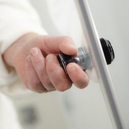 Die serienmäßig innen glasbündigen Softcube-Scharniere bilden mit dem Einscheiben-Sicherheitsglas eine perfekte Einheit. Die Reinigung: ein Kinderspiel!