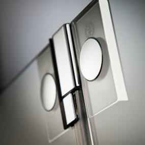 Die innen glasbündige Bauweise der hochwertigen K2/K2P-Scharniere vereinfacht die Pflege der 8 mm Gläser und sorgt damit für dauerhaft brillantes Glas.