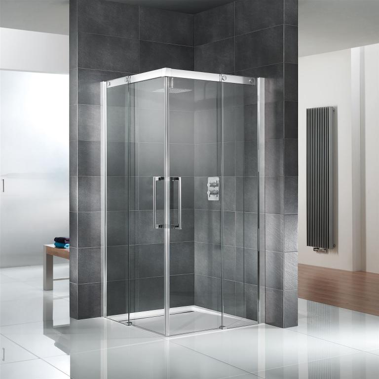 Das Duschkabinenmodell K2p in der Variante Gleittür Eckeinstieg bietet, mit seinen formschönen Griffen und den leise sowie leicht laufenden Gleittüren, die ideale Kombination aus markantem Design und hoher Funktionalität.