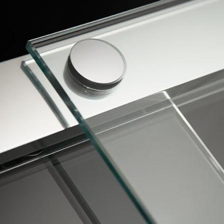 Sanft 2-fach designprämiert: Die 8 mm starken Glaselemente der K2P Gleittürlösungen gleiten leise und leicht auf kugelgelagerten Rollenwagen in einer komplett geschlossenen Gleitschiene.