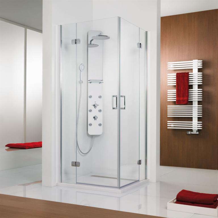 Einen großzügigen Zugang und eine leichte Reinigung bietet der Premium Softcube-Eckeinstieg. Zusätzliche Erleichterung bringt die optionale Edelglasbeschichtung, die Seifenresten und Kalk die Angriffsfläche nimmt. Die edlen Grifflösungen sorgen für ein leichtes Handling der Türen.