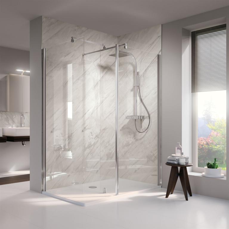 Showerguard: Eine neue Generation des Glases – speziell entwickelt für den Duschbereich. Die diamantähnliche Funktionsschicht des „Easy-to-clean” ShowerGuard-Glases wird bei der Herstellung durch ein ionenbindendes Verfahren versiegelt, sodass es dauerhaft vor schädlichen Einflüssen wie Schmutz und Kalk geschützt ist. Die Pflege – ein Kinderspiel! Und das 10 Jahre garantiert!