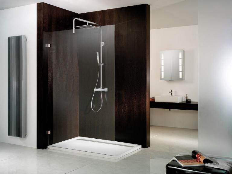 Starke Partner: Passend zu den großzügigen Raumduschen bietet HSK hochwertige Duschwannen aus Acryl und Marmor-Polymerharz.