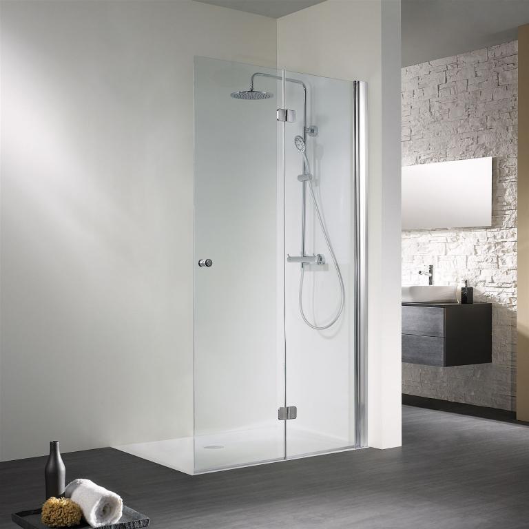 Eine großzügige, barrierefreie Dusche in einem beengten Badezimmer – das gelingt mit der neuen Walk In Exklusiv-Drehfalttür. Bei Bedarf können die 6 mm starken Glaselemente einfach gefaltet und weggeschwenkt werden. Das schafft viel zusätzlichen Raum. Ganzmetall-Drehlager und Scharniere machen das Handling kinderleicht, der Heb-/Senk-Mechanismus bringt die Elemente sanft und sicher immer wieder in die richtige Position zurück.