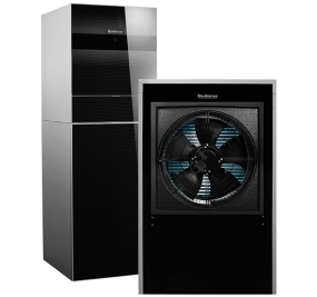 Die Logatherm WLW196i IR besteht aus einer Inneneinheit und einer innenstehenden Außeneinheit. Die Inneneinheit ist als Tower mit integriertem Warmwasserspeicher oder als wandhängendes Gerät jeweils in zwei Varianten erhältlich: monovalent oder bivalent mit Solarwärmetauscher. Durch die Ausstattung mit den wichtigsten hydraulischen Komponenten ist die Wärmepumpe mit geringem Aufwand installiert.