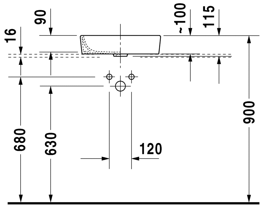 geschliffen, ohne Überlauf, ohne Hahnlochbank, Befestigung inklusive