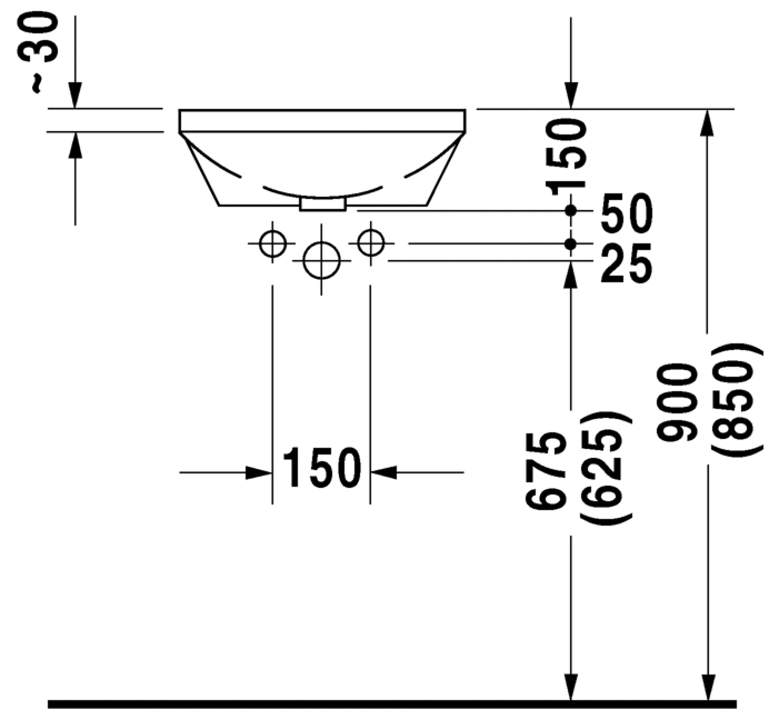 Varianten:mit Hahnloch, mit Vorstich für Seifenspender rechts 1 Hahnloch durchgestochen (links) 1 Hahnloch für Seifenspender (rechts) vorgestochen