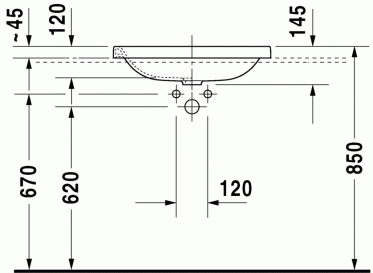 für Einbau von oben, ohne Überlauf, ohne Hahnlochbank