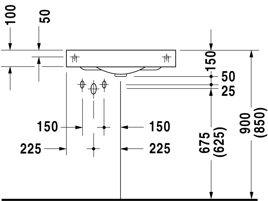 ohne Überlauf, mit Hahnlochbank, mit Hahnloch, Unterseite glasiert