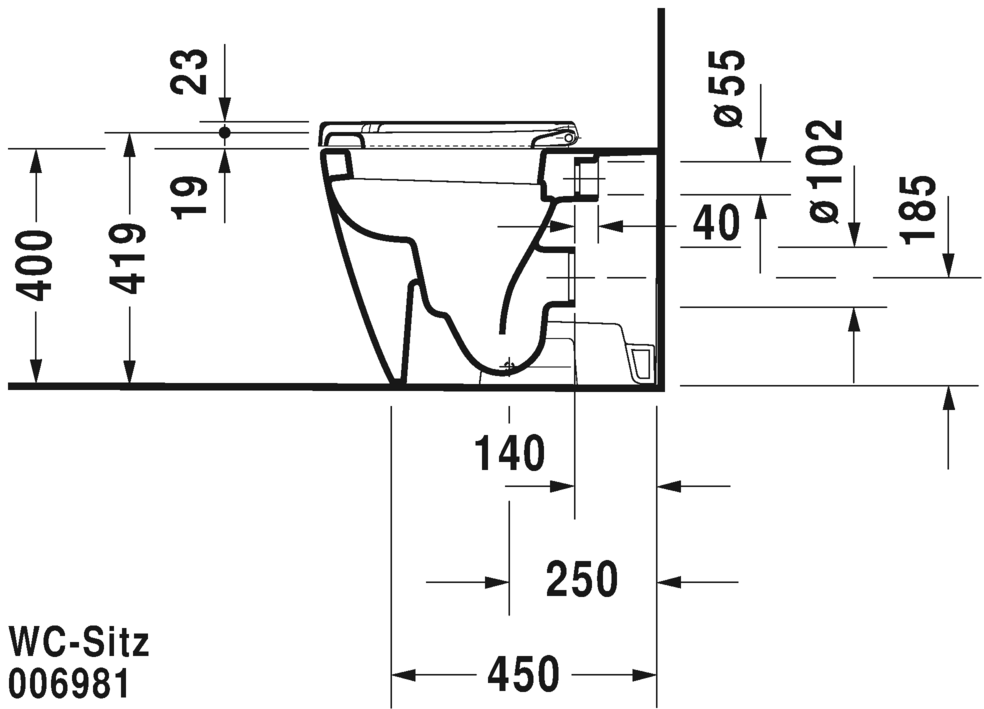 back to wall, Tiefspüler, Befestigung inklusive, Abgang waagrecht, EWL Klasse 1