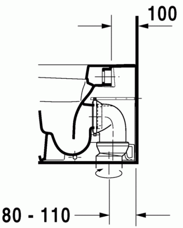 back to wall, für variablen Wasserzulauf, Befestigung inklusive, Tiefspüler, Abgang waagrecht, EWL Klasse 1