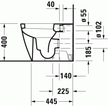 back to wall, für variablen Wasserzulauf, Tiefspüler, Befestigung inklusive, Abgang waagrecht, EWL Klasse 1