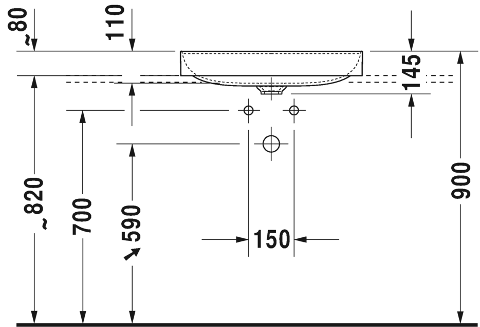 geschliffen, ohne Überlauf, mit Hahnlochbank, Schaftventil mit keramischer Ventilabdeckhaube inklusive, Rückwand glasiert, Befestigung inklusive
