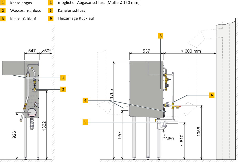 Wasser- sowie Kanalanschluss (für Kondensatableitung)