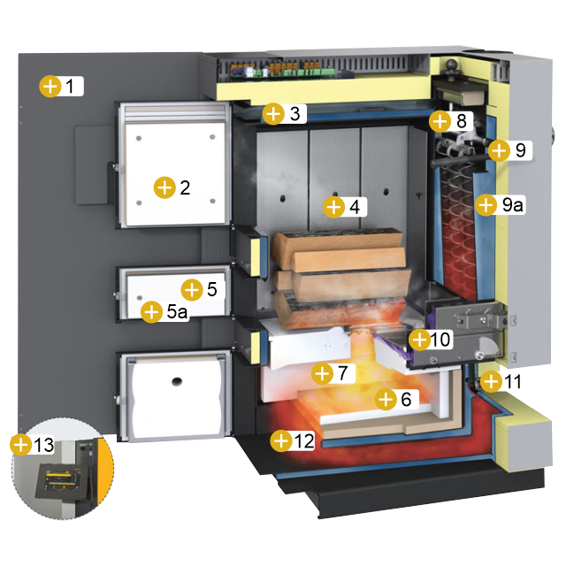 Die beiden Kessel des ETA TWIN arbeiten perfekt zusammen. Geht dem Scheitholzkessel der Brennstoff aus, meldet er das. Wird über eine frei wählbare Zeitspanne nicht nachgelegt, nimmt automatisch der Pelletskessel die Arbeit auf - und zwar so lange, bis Sie im Scheitholzkessel wieder nachlegen. So bleibt Ihr Zuhause auch dann warm, wenn Sie mal länger nicht da sind.