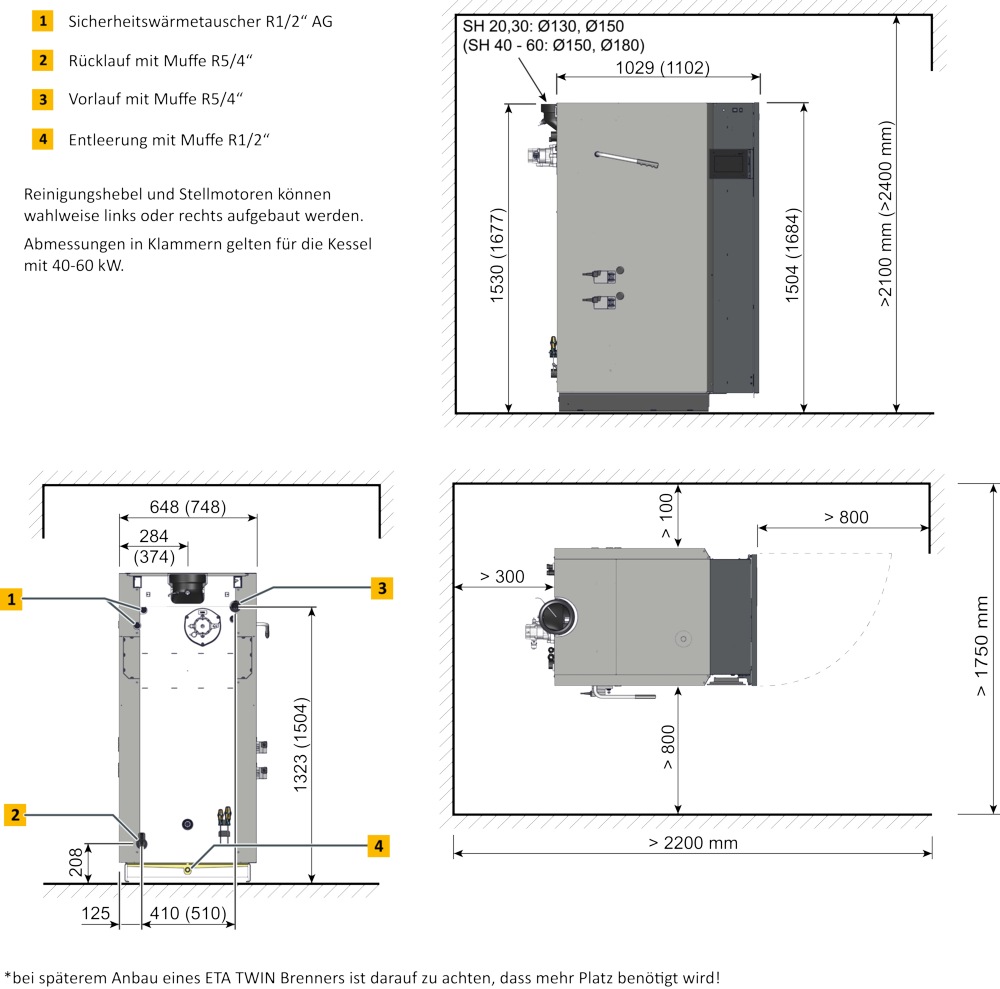 Puffervolumen | Liter | >1.100, optimal 2.000 | >2.200, optimal 3.000 | |||