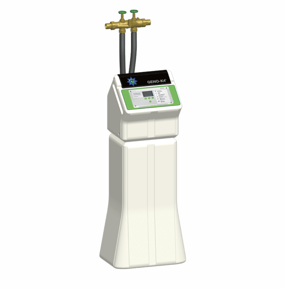 Die elektronische Steuerung des GENO-K4 überwacht die Behandlungsparameter entsprechend der Karbonathärte des Wassers und der Wassermenge. Im Display werden aktuelle Werte, Betriebszustände, sowie die verbleibende Behandlungskapazität angezeigt. Über einen potentialfreien Ausgang können Wartungs- und Störmeldungen an externe Stellen weitergeben werden.