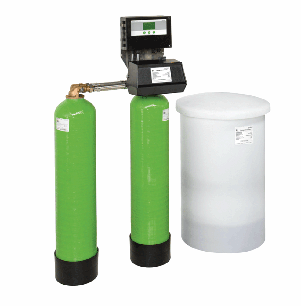 Die GENO-mat® duo WE-X (teil-)enthärten Trink- und Brauchwasser, z. B. Brunnen-, Prozess-, Kesselspeise- und Kühlwasser. Die mengenabhängig gesteuerten Enthärtungsanlagen arbeiten nach dem Ionenaustauschverfahren und sind mit einem Zentralsteuerkopf für beide Austauscherbehälter ausgestattet. Als Doppelanlagen sind sie für die kontinuierliche Versorgung mit Weichwasser geeignet, die Regeneration mit Vollbesalzung (Industrie, Enthärtung < 0,1 dH) und Sparbesalzung (Wohnhäuser) ist im Angebot. Das Weichwasser wird über eine Verschneideeinrichtung, die bei den Größen 50, 130, 230 integriert ist, auf den gewünschten Härtebereich (vorzugsweise Härtebereich 1) verschnitten. Die Anlagen sind in fünf Größen von 2,0 m³/h bis 9,5 m³/h Dauerdurchfluss erhältlich.