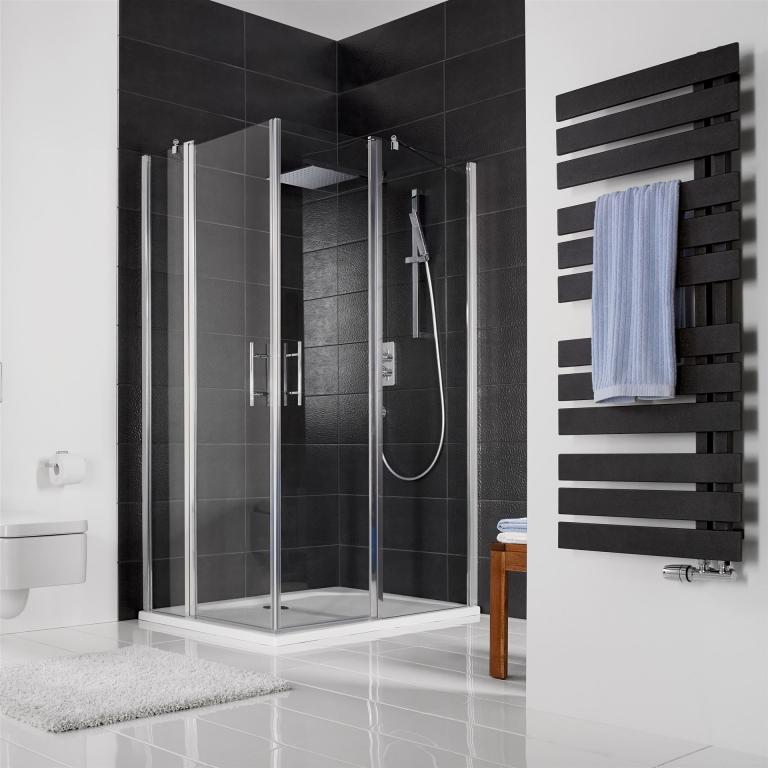 Eine Magnetschließleiste sorgt für ein sauberes und zuverlässiges Schließen der 5 mm Sicherheitsglas-Türen. Die neuen Dreh- und Pendeltürlösungen sind in einer Höhe von 195 cm lieferbar.