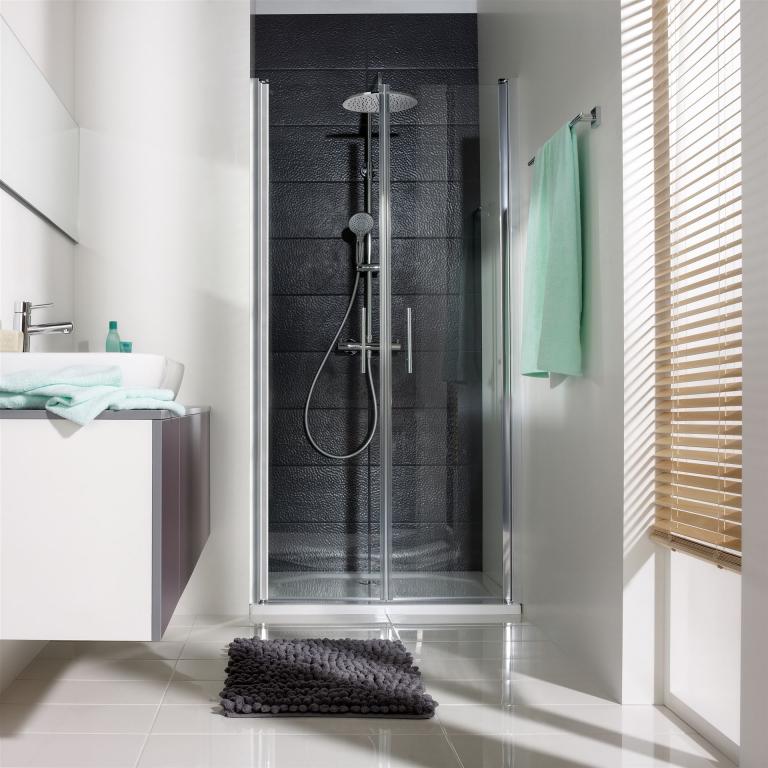 Nach außen oder nach innen? Bei einer Pendeltür geht beides! Die Elemente dieser Favorit Nova-Duschabtrennung lassen sich weit nach innen und außen schwenken. Je nach Bedarf oder Raumsituation sind sie auch mit einer Seitenwand kombinierbar.