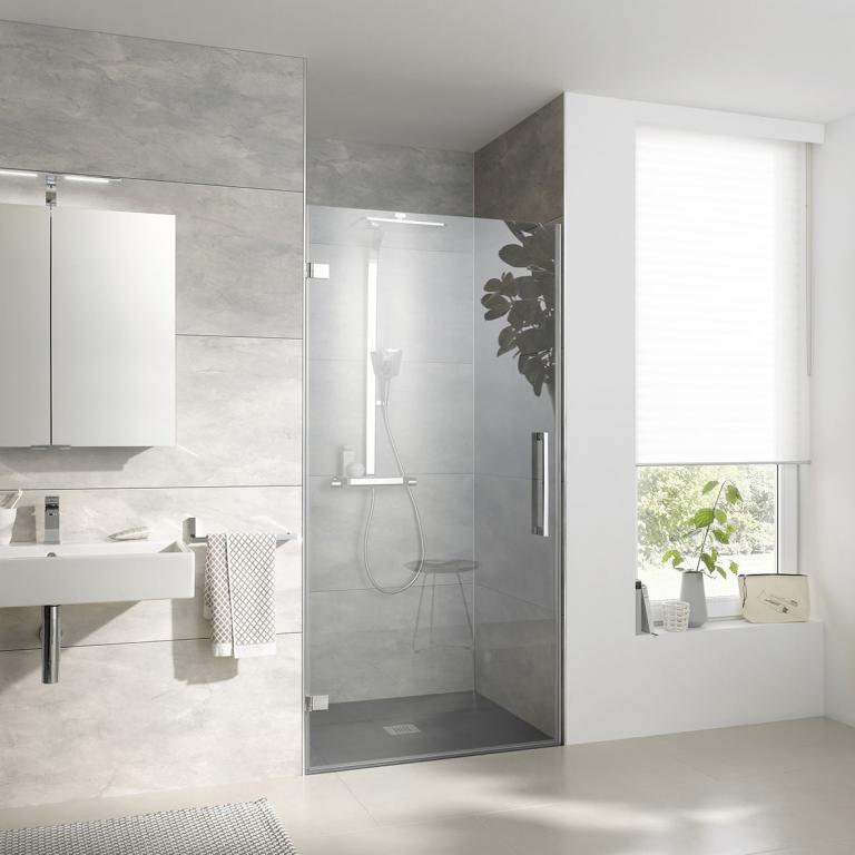 Atelier Plan Pur bringt Leichtigkeit in Ihr Badezimmer. Die rahmenlosen Duschabtrennungen schaffen nicht nur optisch Freiheit – auch funktional sind mit dieser Serie kaum Grenzen gesetzt.