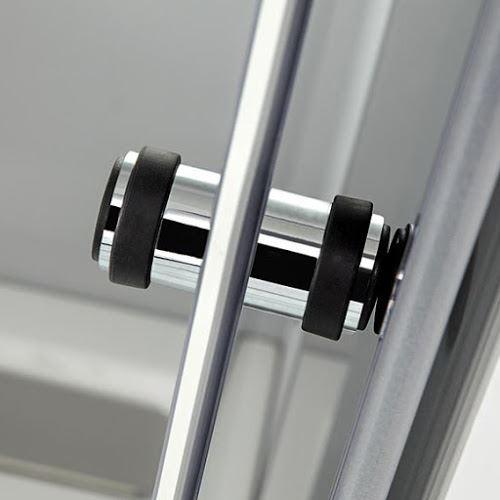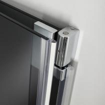 Die dreh- und faltbaren Türelemente dieser Lösung lassen sich nach außen oder innen wegklappen. Die Glas-elemente können im Duschbereich abtropfen und trocknen. Der spezielle Griff ist mit einem funktionalen Gummipuffer ausgestattet. Er ist damit rutschfest und verhindert das harte Anschlagen der Türelemente. Optional: zweiter Griff für ein noch besseres Handling.