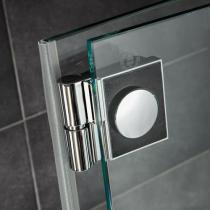 Die innen glasbündige Bauweise der hochwertigen K2-Scharniere vereinfacht die Pflege der 8 mm Glaselemente und sorgt damit für dauerhafte Brillanz.