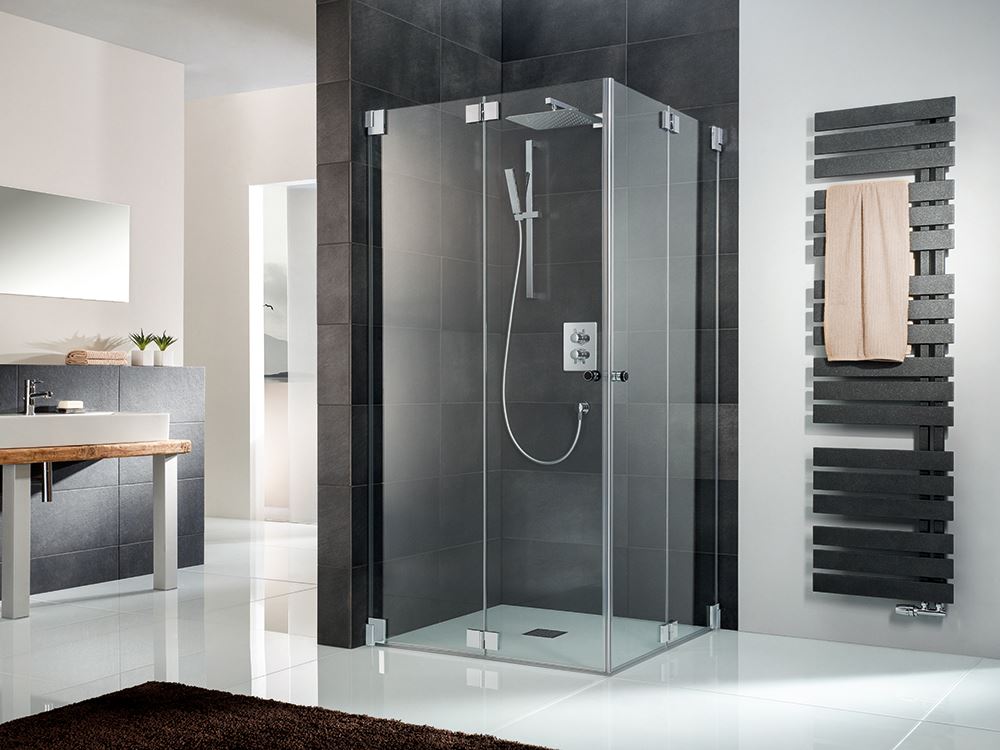 Die innen glasbündige Bauweise der hochwertigen K2-Scharniere vereinfacht die Pflege der 8 mm Glaselemente und sorgt damit für dauerhafte Brillanz.