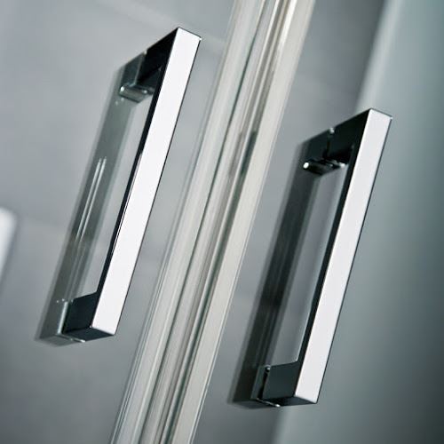 Bei dieser designprämierten K2-Lösung läuft die edle 8 mm starke Echtglastür sanft hinter das feststehende Element. Mit Hilfe des neuen, optional wählbaren, 24 cm lange Ganzmetall-Riegelgriffs öffnet sich die Tür maximal und vergrößert den Einstiegsbereich um 30 - 40 mm Breite.