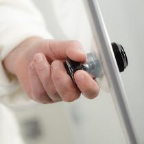 Die Heb-/Senktechnik des Exklusiv-Profils hebt die Tür beim Öffnen leicht an. Im geschlossenen Zustand senkt er sie wie auch im 90° Winkel sanft ab.