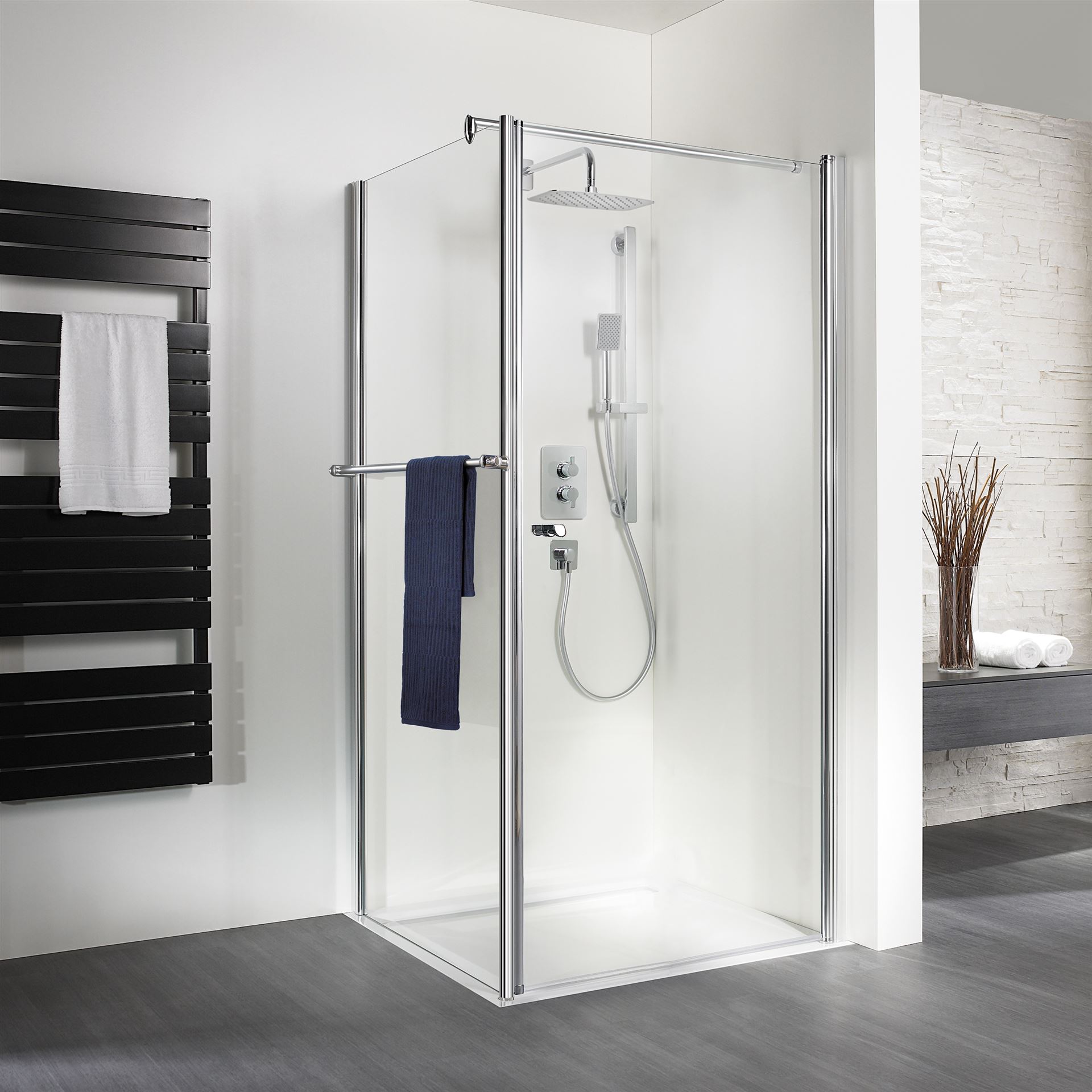 Ideal für nebeneinander stehende Bade- und Duschwannen mit unterschiedlichen Tiefenmaßen. Durch die separate, schwenkbare Seitenwand sind teure Sondermaße vermeidbar. Besonders einfach: die Pflege!