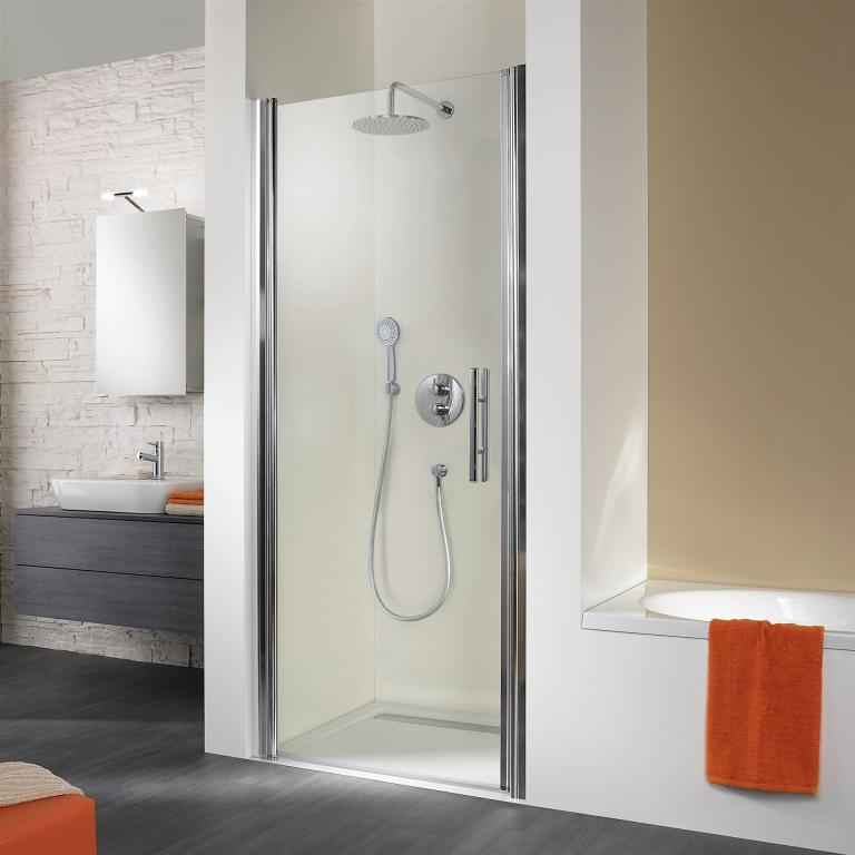 Einladend zeigt sich diese Nischenvariante mit einem breiten Einstieg bis zu 100 cm. Die Tür öffnet nach außen und ist mit funktionalem Heb-/Senk-Mechanismus ausgestattet. Eine individuelle Variante bietet die geteilte Nischendrehtür. Durch die Zweiteilung wird das Duschen von Jung und Alt erleichtert.
