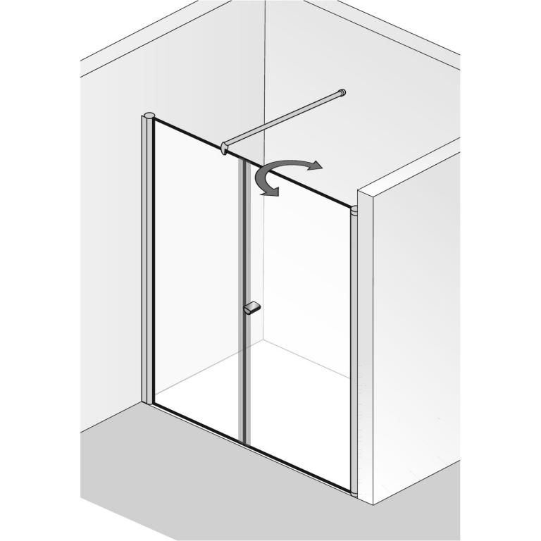 Mit dieser Lösung können Sie den Raum in Nischen oder am Kopf von Schlauchbädern voll ausnutzen. Das feststehende Seitenteil und pendelbare Tür füllen Nischen bis zu 200 cm und lassen sich in Kombination mit einer HSK-Duschwanne oder bodengleich montieren.