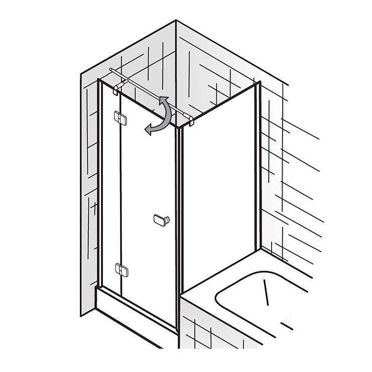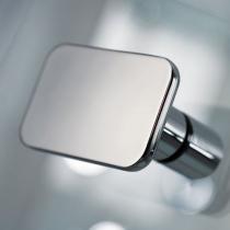 Eine Ecklösung für spezielle Anforderungen ist diese pendelbare Drehtür mit verkürzter Seitenwand. Die Gläser lassen sich durch die innen glasbündigen Scharniere und hochwertigen Wandprofile einfach pflegen. Zusätzliche Erleichterung verschafft die optionale Edelglas-Beschichtung, welche Seifenresten und Kalk die Angriffsfläche nimmt. Auch für die Echtglas-Varianten "grau", "chinchilla" und "carré" sowie Ausführung mit Glasmattierung möglich.