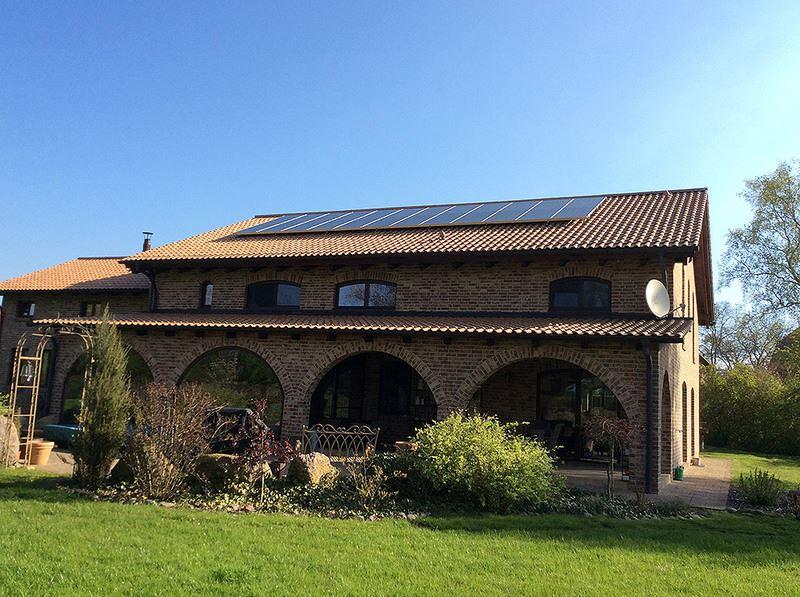 Auf dem Beispielfoto sehen Sie die vielseitigen Module, kompakt genug für Wohnhausdächer, aber auch für Gewerbeobjekte geeignet und trotzdem wirtschaftlich genug. Die Module liefern einen überdurchschnittlich hohen Energieertrag.